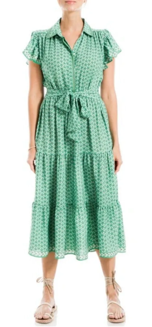 Green geometric print shirt dress by Max Studio London featuring a button-front bodice, collared nec... Show more