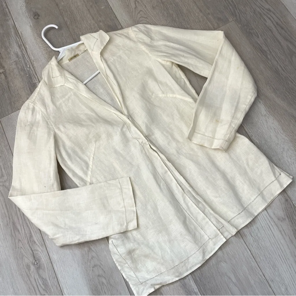 Max Studio Minimalist Linen Top in the color Cream. Two button closure on the center front, v neckli... Show more