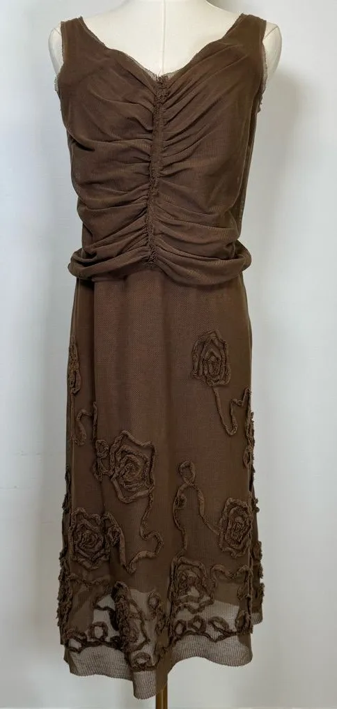Max Studio Y2K Brown Ruched Floral Appliqué Sleeveless Dress Women’s Size XS. Pullover style, elasti... Show more