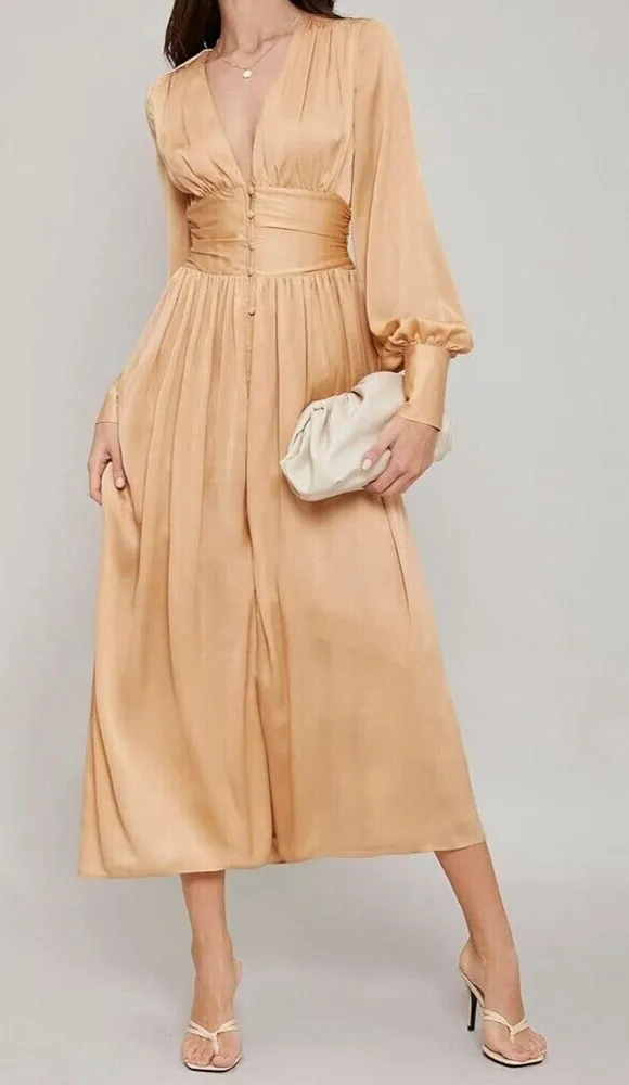 Maxi dress modern ball women gowns gold wait casual romantic chic femine flowy Moft L. Brand new!... Show more
