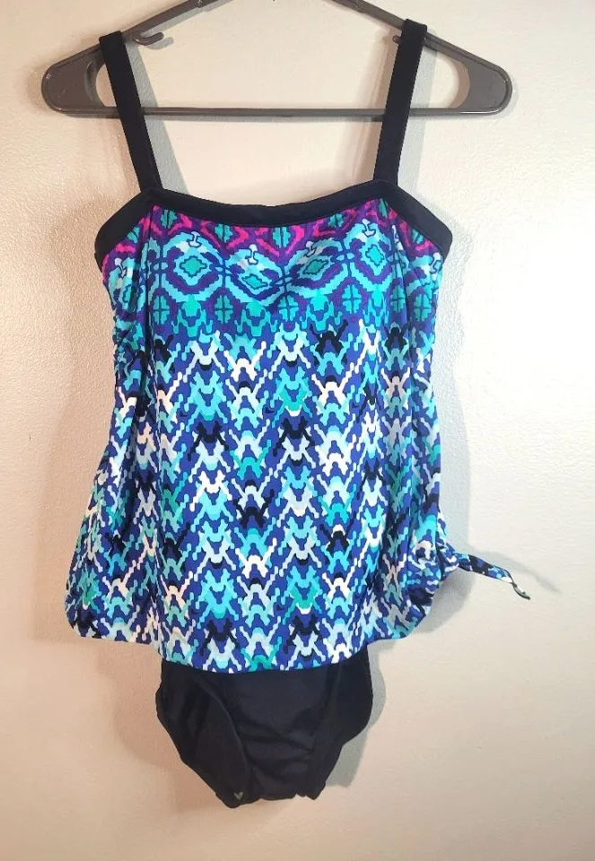 Maxine of Hollywood Blue and Black Swimsuit . Size 10. - $27 - From Ingrid