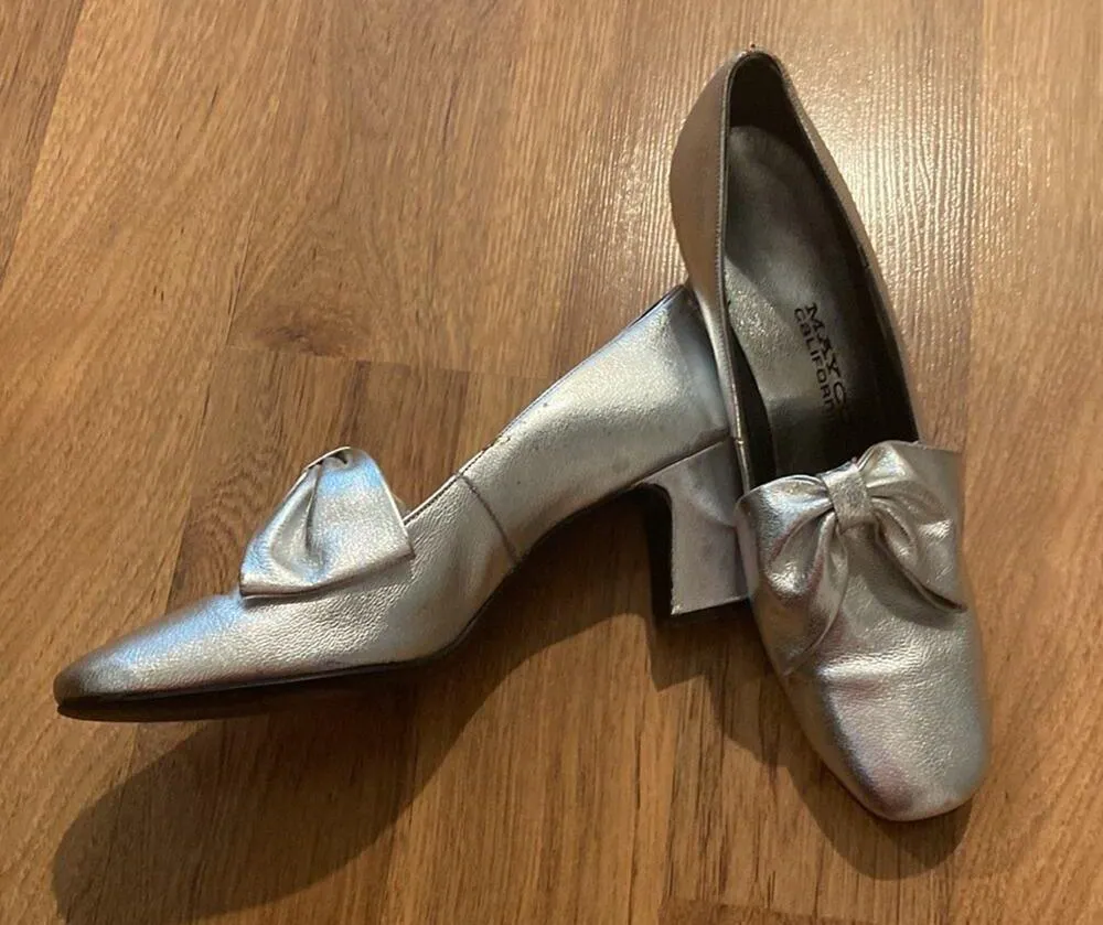 Oh so adorable! Vintage May Company California silver metallic leather bow heels. Maybe 80’s? ⭐️ Go... Show more