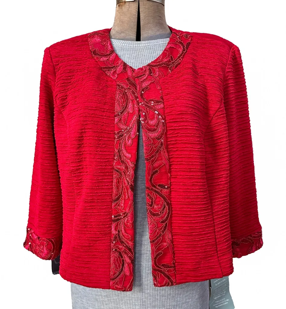 Shoulder pads: built-in 3/4 bell sleeve with embellished cuff Embellishments: Sequins & embroidered... Show more