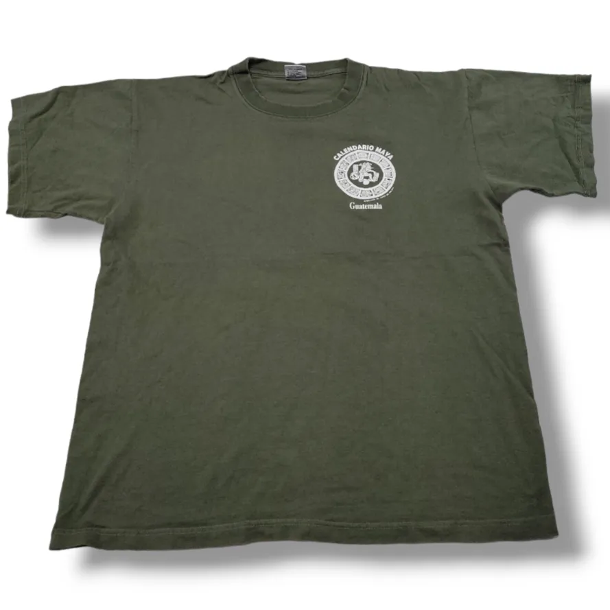 Mayan Shirt Size XL By Alex J.R. Graphic Tee Calendario Maya Guatemala Souvenir Unisex T-shirt Mayan Calendar Graphic Print T-Shirt Graphic Shirt Graphic Print Shirt Green 100% Cotton Made In Guatemala Used Condition See Pictures For Condition All Measurements Were Measured Flat Shoulders 20" Sleeves 7.5" Armpit To Armpit 22" Full Length 27" P2.8z