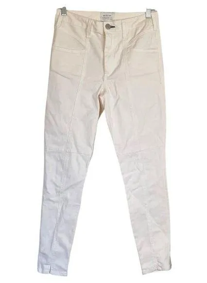 Full ankle length Zipper front fly closure Style 93A Cotton and polyester fabric blend; stretchy Machine wash Ankle slits Size 28 Measurements~~ 28" Waist 10" Rise 27" Inseam Excellent condition, no flaws