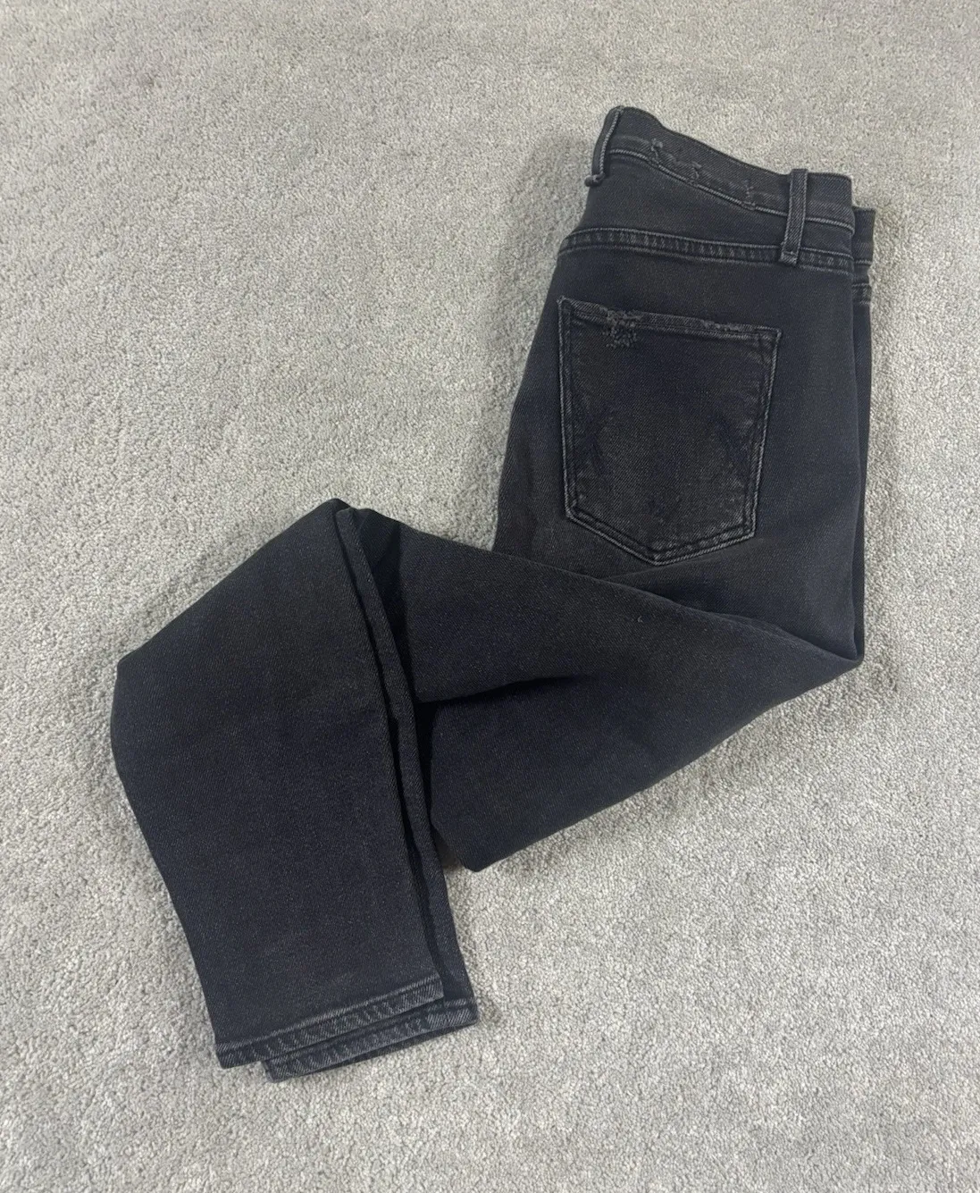 The product is a pair of women's McGuire jeans in a stylish skinny fit, featuring a black and gray wash finish in size 27. These jeans are designed to be fashionable and flattering, perfect for any woman looking to add a versatile and trendy piece to her wardrobe. Made by the McGuire brand, known for their quality and on-trend designs, these jeans are sure to become a staple in any woman's closet. Hanger 414