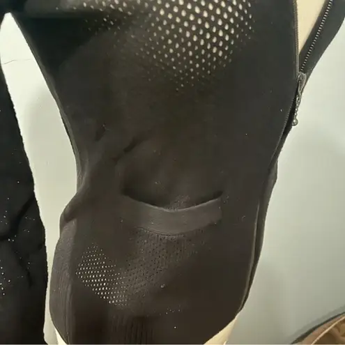 This McQ Alexander McQueen x Target Mesh Cardigan in Black is in great condition. Size XS Bust: 16” Sleeve Length (pit to cuff): 13” Length: 23” Open mesh cardigan Metal zipper front that goes around the entire neckline 2 front pockets 3/4 sleeve length F16814827