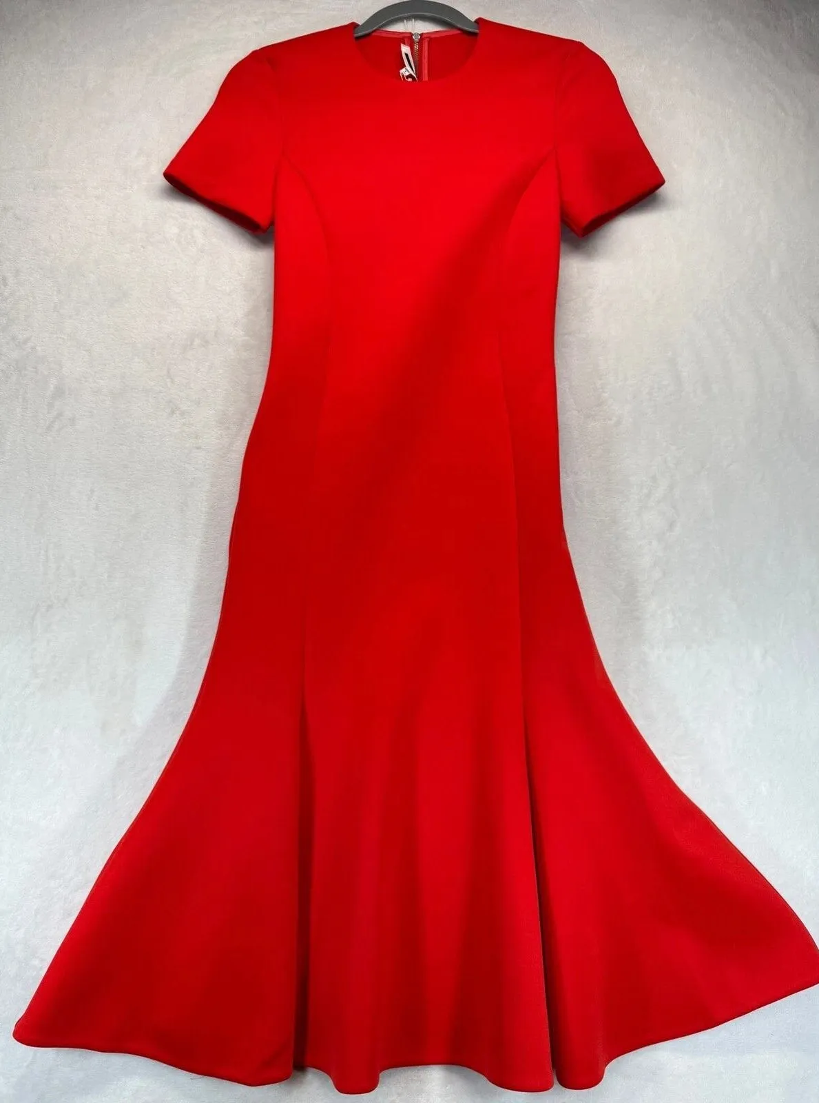 Style: Fit & Flare Dress Length: Midi Color: Red Department: Women Sleeve Length: Short Sleeve Pattern: Solid Occasion: Party/Cocktail, Business, Workwear Neckline: Round Neck Character: Party, Career, Contemporary, Designer, Formal Season: Fall, Spring, Summer Sleeve Type: Cap Sleeve Closure: Zip Keywords: MCQ, red dress, midi dress, fit and flare, short sleeve, party dress, career dress, designer dress, womens dress, size XS, cocktail dress, event dress, formal dress, contemporary, old money, quiet luxury, closet staple, gossip girl, capsule wardrobe, office siren, corpcore, officecore, lawyer, secretary, boardroom chic Thank you for viewing my listing! Please see the photos for a detailed look at its CONDITION and MEASUREMENTS. All preowned items have been steam cleaned and/or washed. Feel free to reach out with any questions.