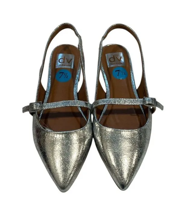 Dolce Vita nwot Mary Jane Slingback Flats in the color Silver. Adjustable front strap. Mary jane flats. Super cute. Perfect to dress up or down. For office, workwear, going out, party, or holidays. Size 7.5 New without tags Please see pics