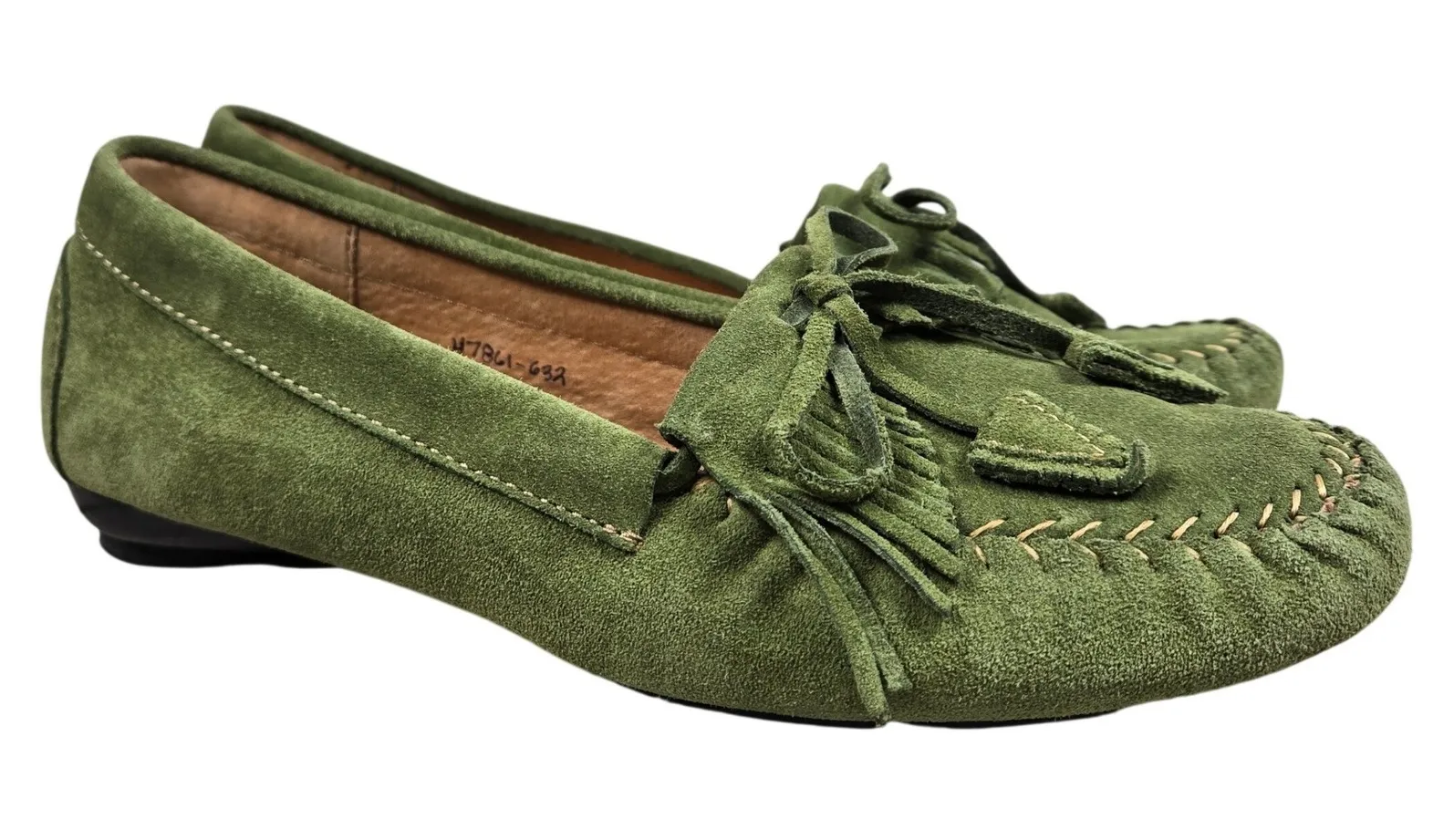 Size: 6 Style: ERROW Q Leather Upper Balance man made materials In great pre-owned condition with no known flaws and minimal signs of wear. Keywords: suede, tassel, mocassin, loafers, green, flats, casual, comfort, slip on, boho, preppy, driving shoes, european style