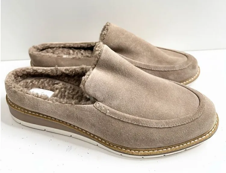 Me too Mules Womens Size 10 Tan Leather Upper Hayley Shearling Slip On Shoes - $38 - From Brenda