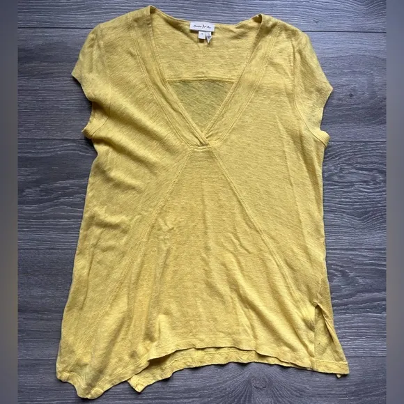 Meadow Rue yellow 100% linen top short sleeves. V neck. Size S. Previously owned. Approximate meas... Show more