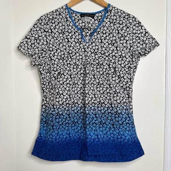 Medical Nurse Scrub Top OmbrĂ© Floral Women’s Size XS Cotton Blue Black Vet - $15 - From Melanie