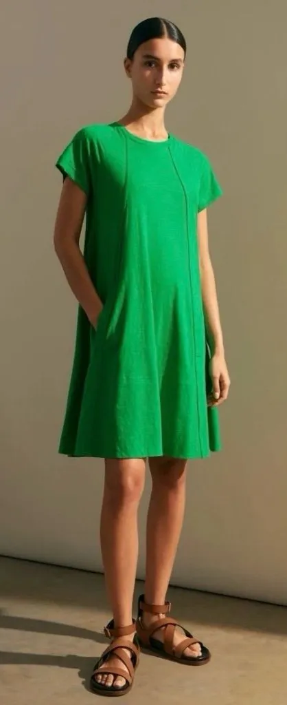 ME + EM Cotton Slub Jersey Raglan T Shirt Swing Dress 2 Kelly Green Minimalist Color: Spring Green Little to no signs of wear Soft cotton jersey Breathable and comfortable Round neck Short raglan sleeves Swing silhouette Side pockets Style profile: colorful, minimalist, beach, resortwear, preppy