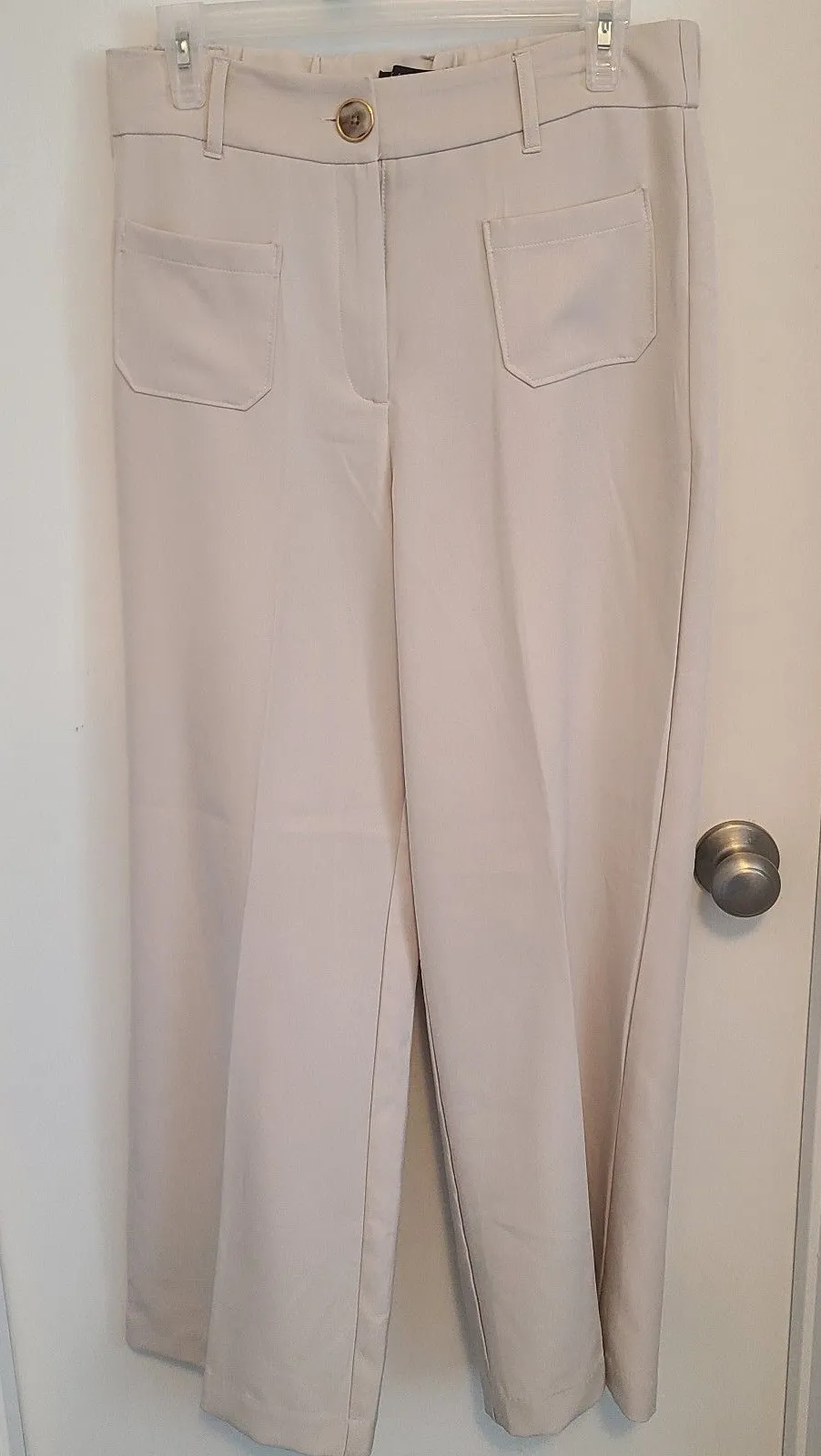 Excellent pre-owned condition (see pictures for details) Features - Style Profile : Meg & Margot Women's Wide Leg Trouser Pants Cropped Fit Front Pocket Detail Elastic back waist front button and zip closure - Flaws - no holes, stains or tears - Please see photos for measurements (in inches) - Happy to answer any questions - Washing Instructions: machine wash Size : Small Color : cream off white Tags : business office comfort travel everyday workwear capsule wardrobe academia teacher Smoke free | pet friendly home- not stored where pets have access Fast shipping! Usually next business day!