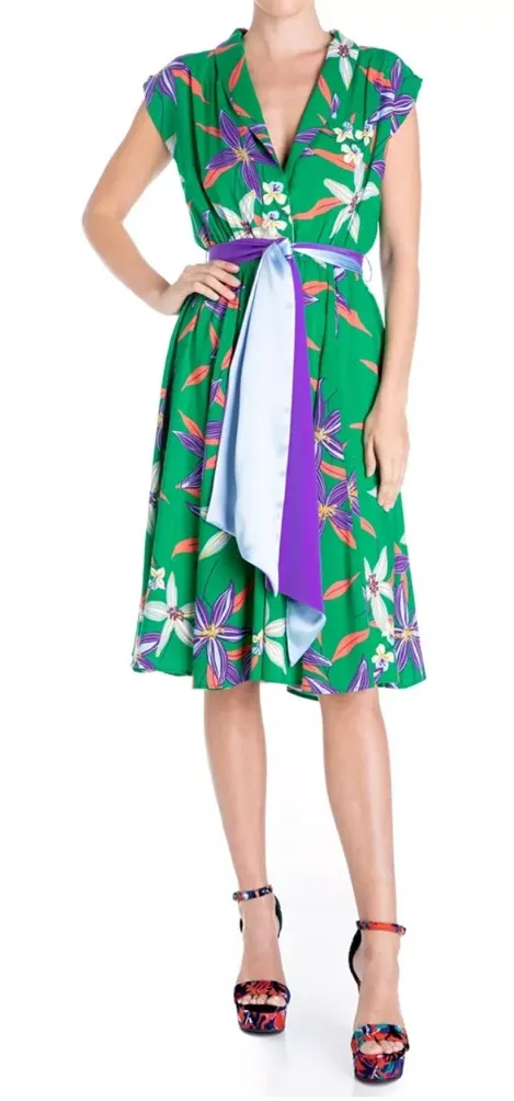 Meghan Fabulous Women's Honeysuckle Midi Dress Designed with the bohemian goddess in mind, this dreamy midi is as ethereal as it is effortlessly comfortable. Perfect for a garden party or summer event, this fun and flirty dress has an adjustable elasticized waist with a contrast removable satin tie sash. Product Features Made in USA Designed with LOVE in Los Angeles XL=14-16 EUC with no flaws