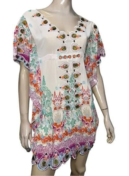 Meghan Los Angeles Women's Size 6 Multi-Color Beaded Rhinestone Embellished Tops Tunic Cover Up ▪️ E... Show more