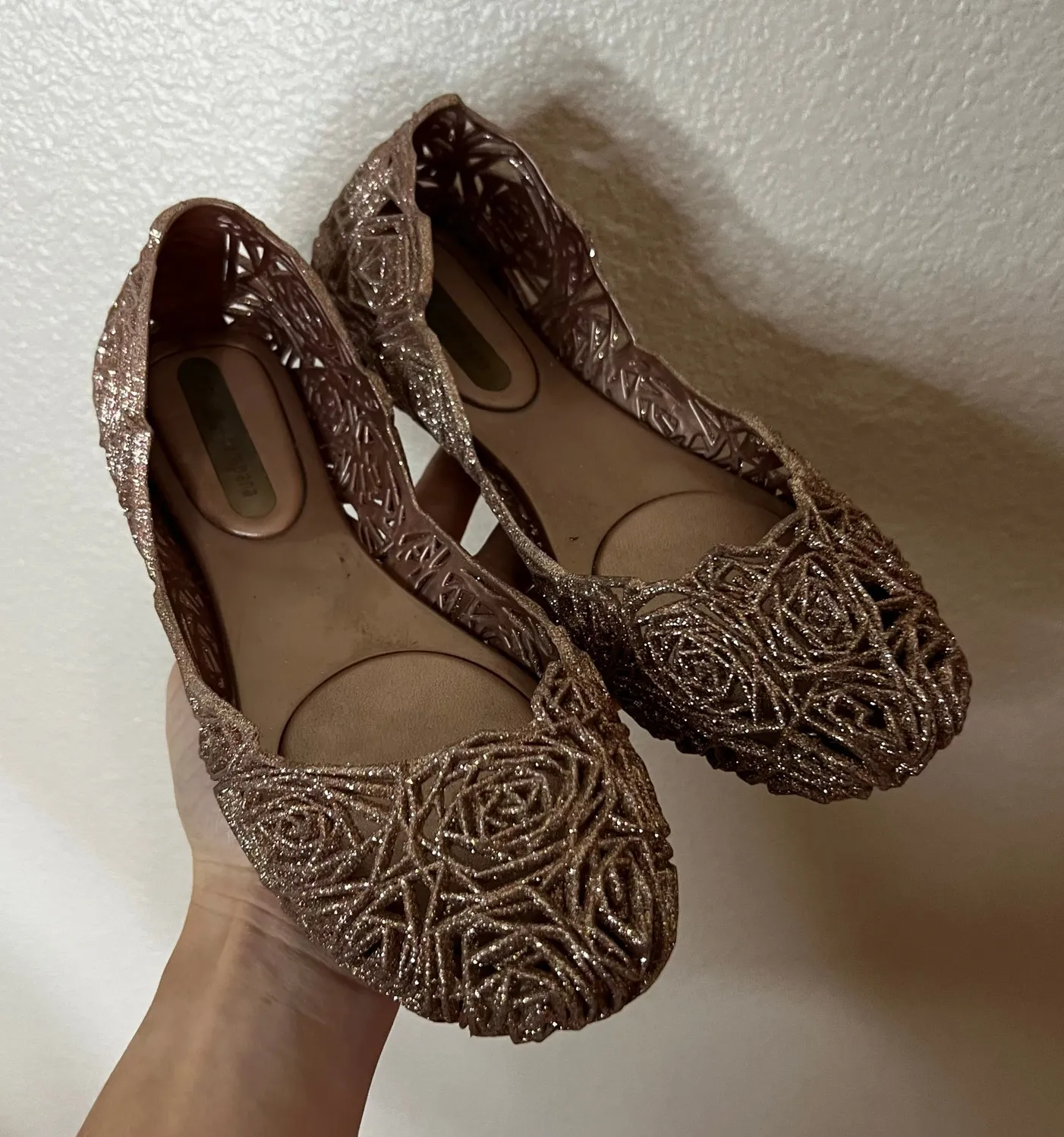 Melissa x Campana rose gold glitter rosette flats WOMENS 6 Pink - $40 - From Maria
