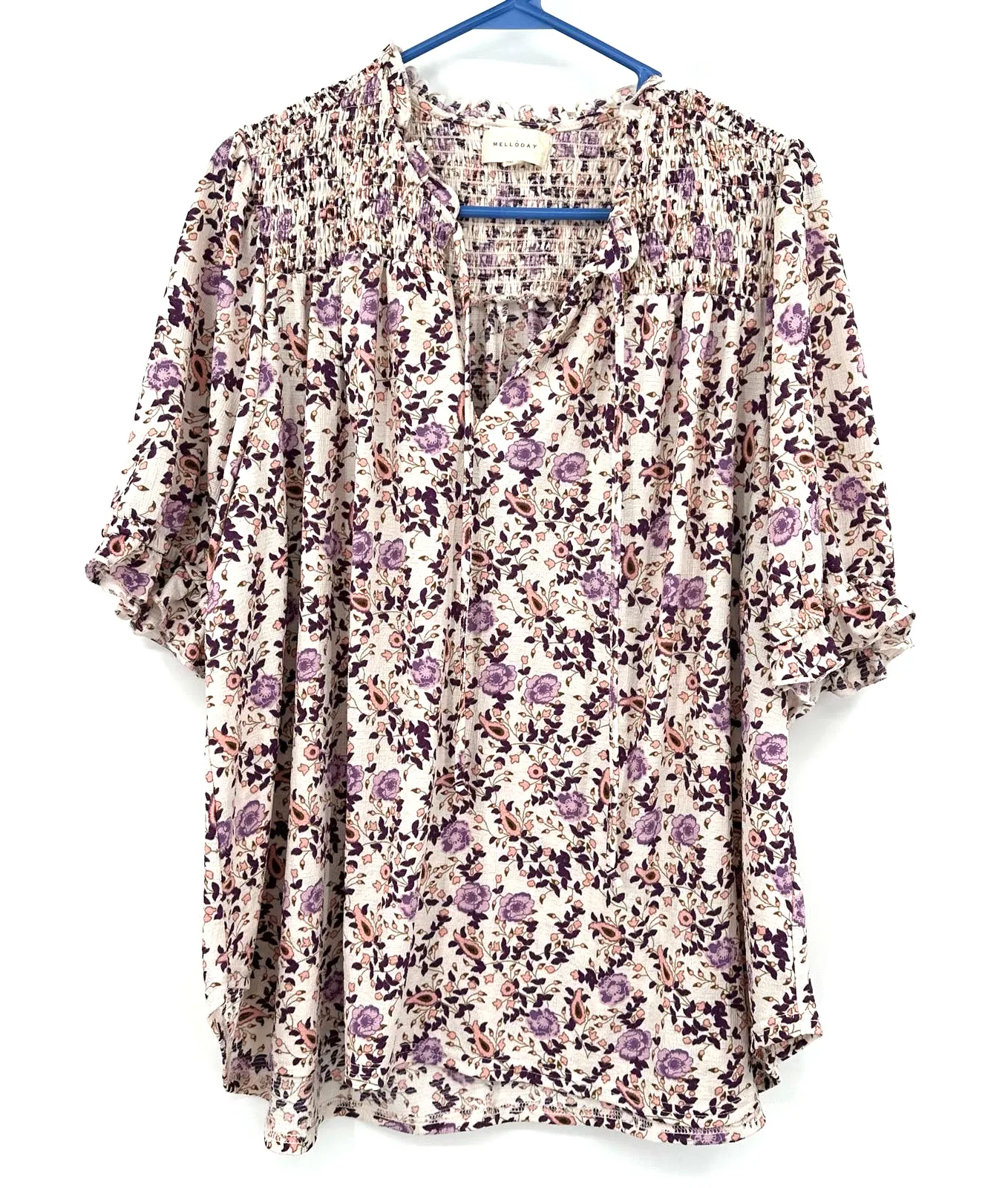 melloday size 2X short sleeve blouse floral print smocked upper cream purple‎ Purple - $18 - From Taylor