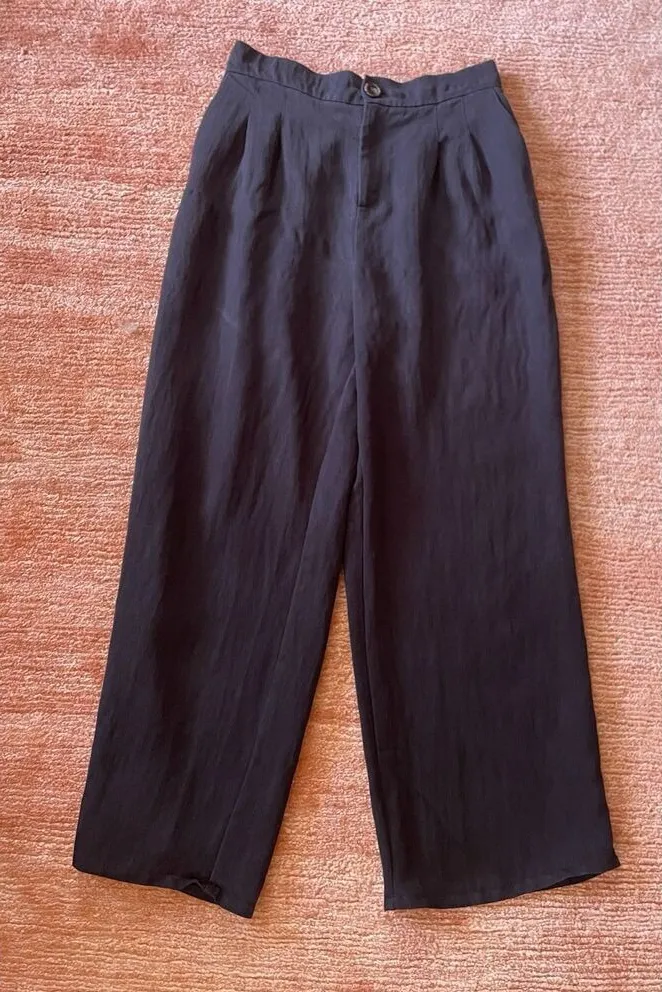 Crafted for comfort and style, the MELLODAY Women's Black High Rise Wide Leg Pants are a versatile addition to any wardrobe. In a classic solid black, these pants are made from a blend of polyester and Tencel, offering both durability and a gentle, sustainable choice. The high-rise design and relaxed fit create a flattering silhouette for everyday wear, while the wide-leg cut ensures ease of movement and a modern edge. Functional features like pockets and a convenient zip closure add practicality to these knit sweatpants, making them ideal for casual outings or travel. With a 28-inch inseam and pleated front, they strike the perfect balance between laid-back and put-together, suitable for the city life or any laid-back setting. Embrace the cooler seasons with these pants that are ready for fall, spring, and summer. Excellent condition