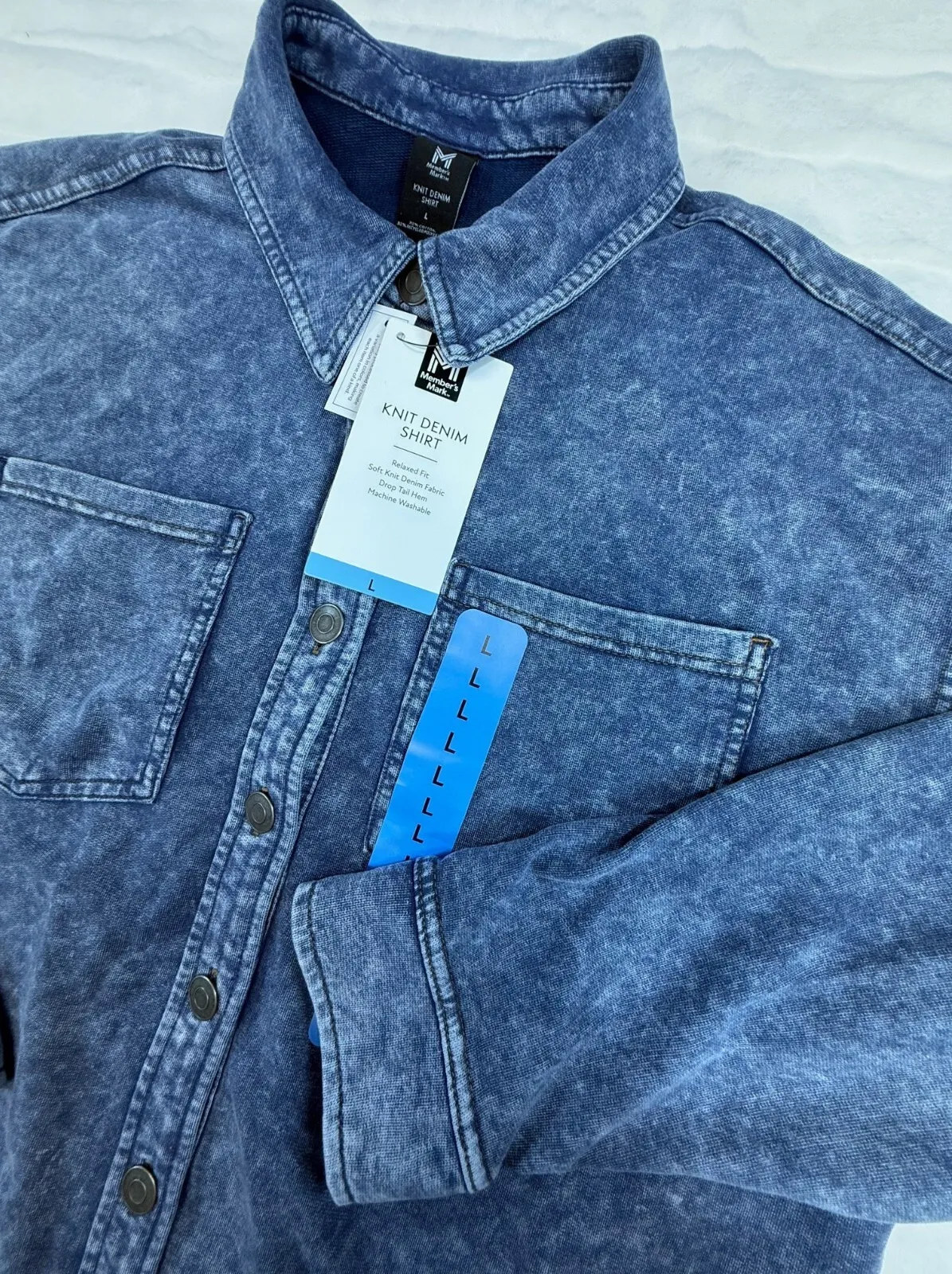 Members Mark Shirt Women Large Blue Acid Wash Denim Relaxed Soft Knit Button New - $25 - From Brandi