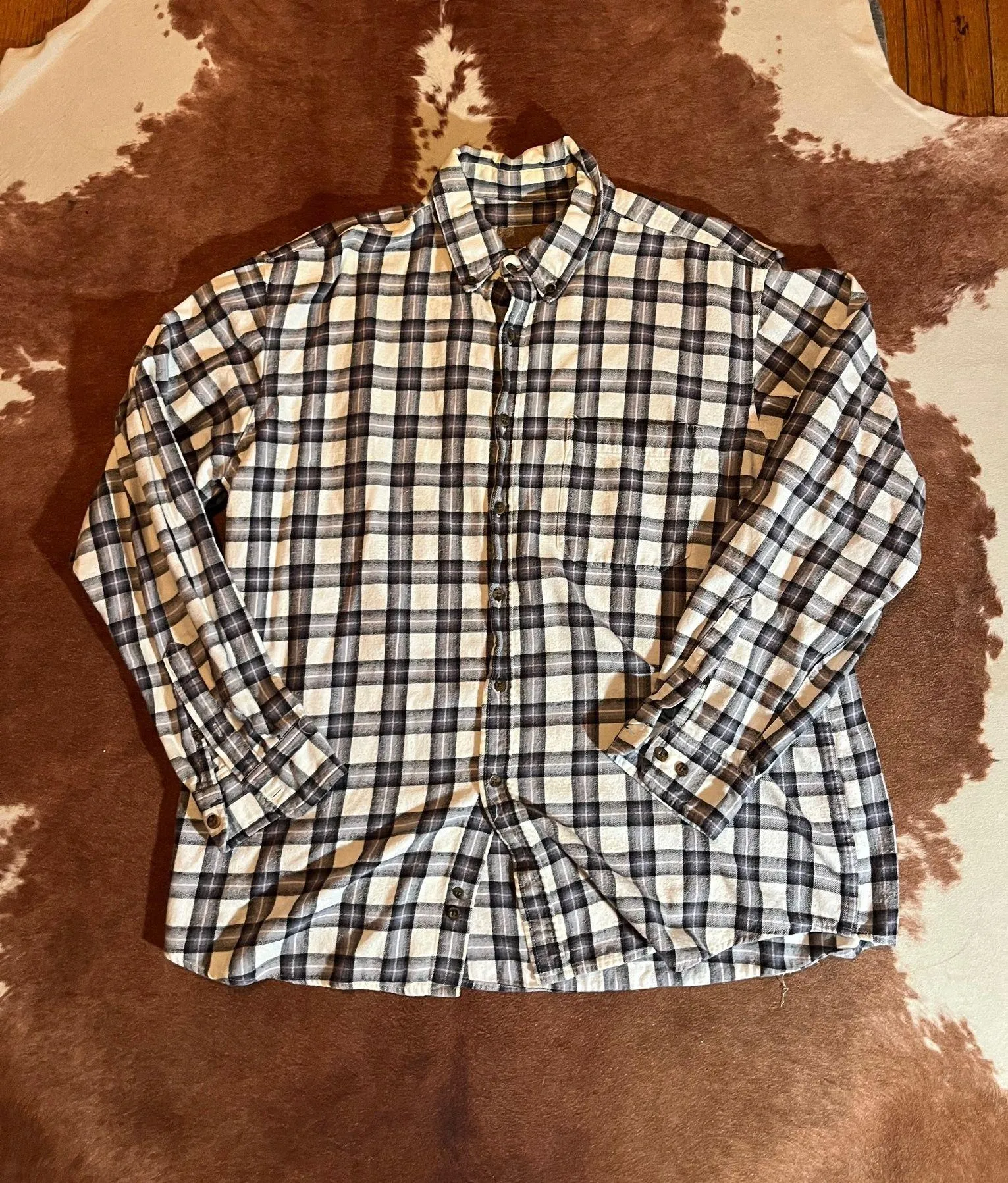 Men's black and white plaid button size XL The brand is rubbed off but I was thinking it was Schmidt Multiple - $20 - From Camryn