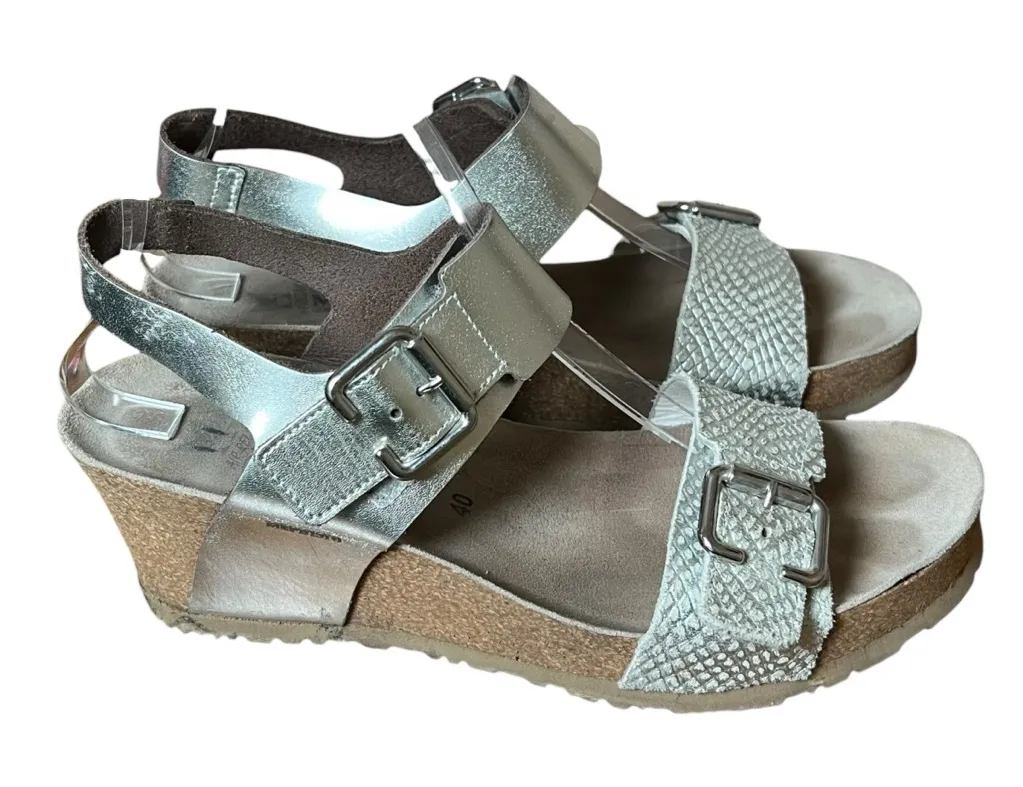 Mephisto Lissandra women’s silver metallic cork wedge platform comfort sandals Size 40 (EU) Size 1... Show more