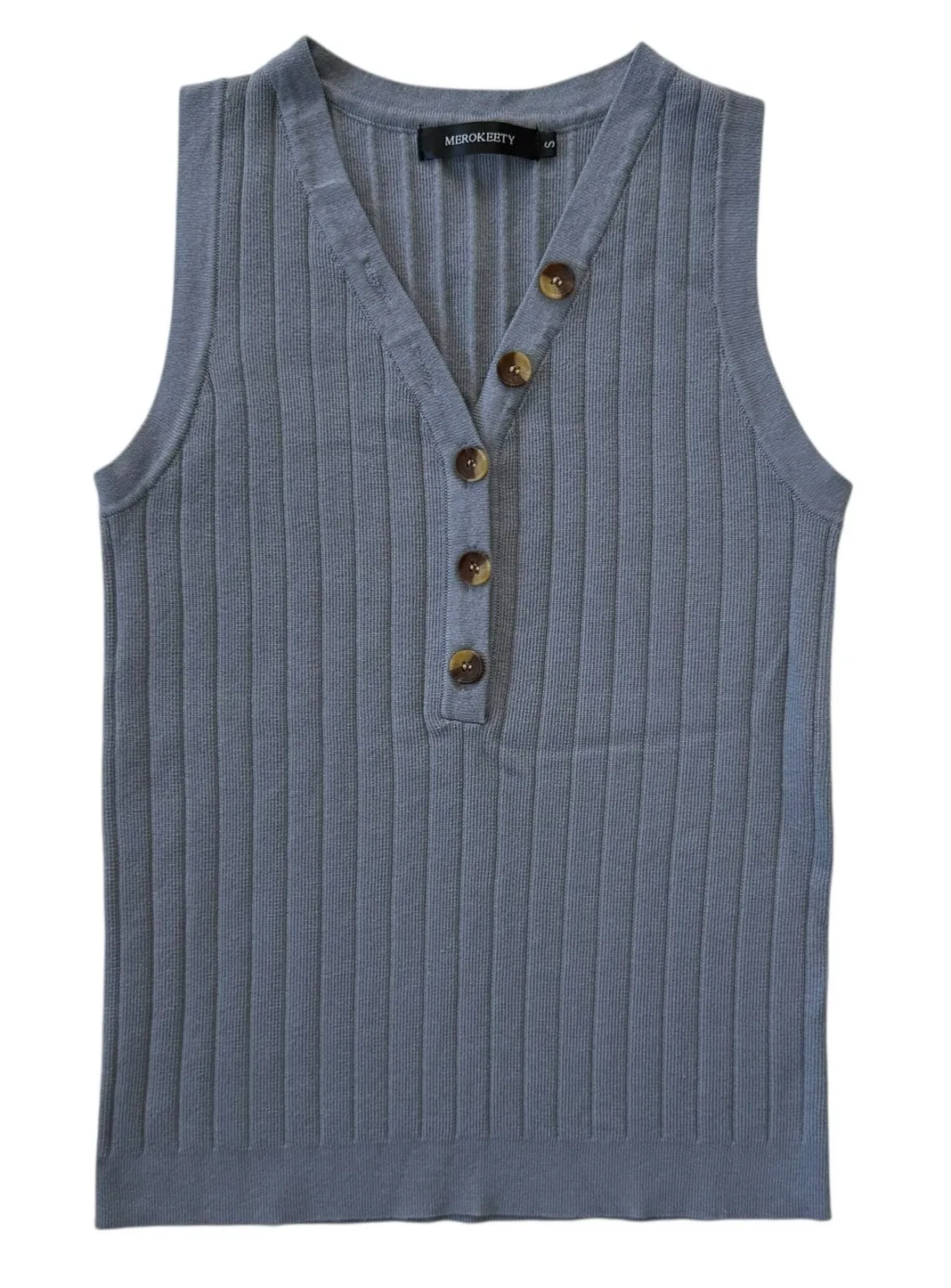 Merokeety Gray/Blue V-Neck Tank Top NWOT Sleeveless Knit Blouse Size Small New without tags Per... Show more