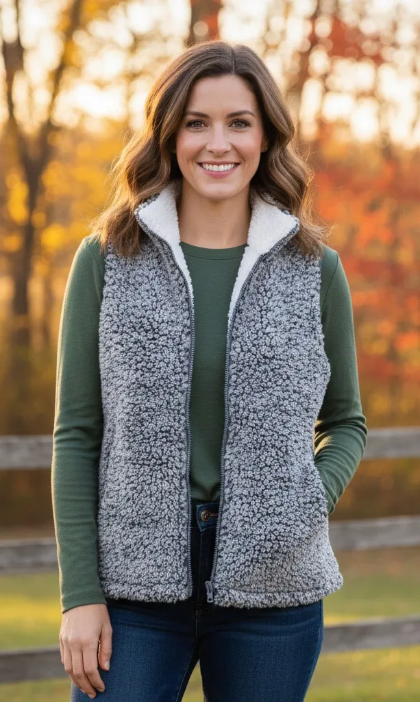 MEROKEETY Grey Sherpa Fleece Zip-Up Vest with Pockets - Size XL Description Model photo for style may be slight difference Stay cozy all season in this ultra-soft MEROKEETY Sherpa Vest! This plush fleece vest features a textured "teddy" grey and white marled exterior with a crisp white sherpa-lined collar. It’s the perfect lightweight layer for fall hiking, running errands, or lounging at home. • Brand: MEROKEETY • Size: XL (Extra Large) • Color: Marled Grey/Charcoal and White • Material: 100% Polyester (Super soft, high-pile fleece) • Features: * Full-zip front closure with smooth-gliding zipper. • Two functional zippered hand pockets with satin-feel lining. • Stand-up collar for extra warmth. • Lined interior for a comfortable, non-scratchy fit. • Condition: Excellent pre-owned condition. No stains, tears, or significant "matting" of the fleece. Approximate Measurements (Flat Lay): • Pit to Pit: ~20.5" (See photos) • Length: ~25" (From shoulder to hem) Keywords & Style Tags Keywords: Sherpa Vest, Teddy Fleece, Marled Grey, Winter Layering, Cozy Core, Gorpcore, Casual Outerwear, Fuzzy Vest, MEROKEETY Jacket.