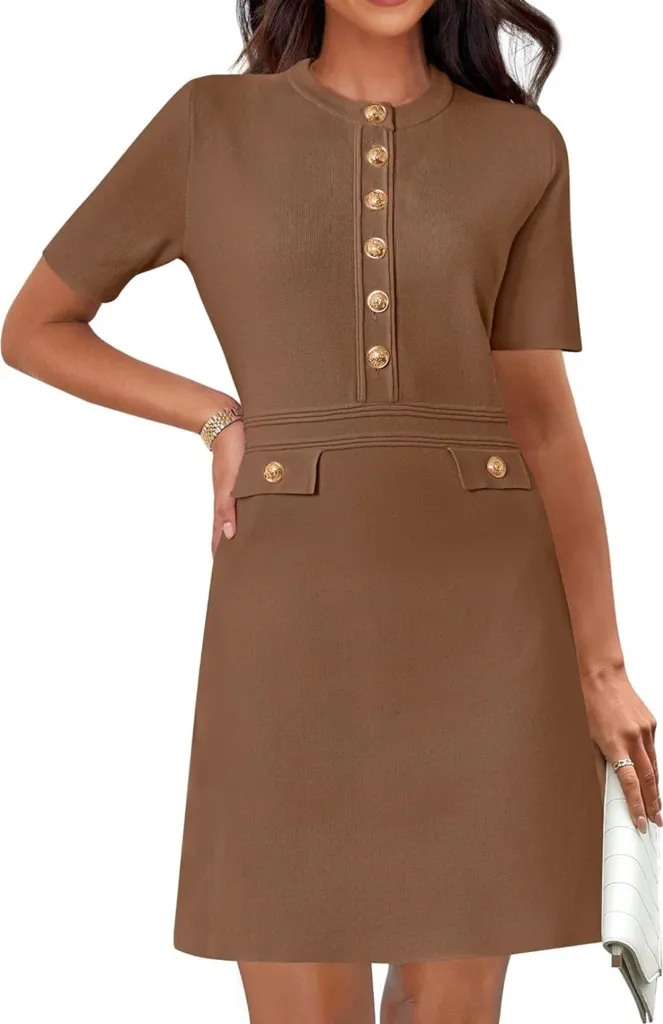 This elegant brown dress features a classic button-down design, perfect for any occasion. The sophisticated style and rich color make it a versatile addition to your wardrobe.