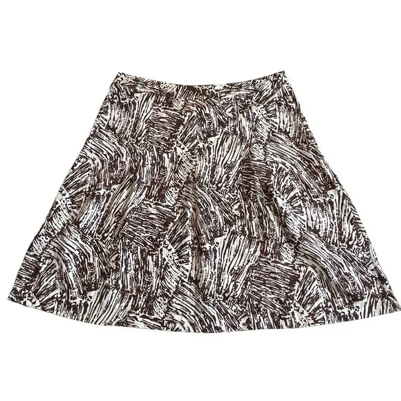 Brown and ivory color silk skirt Pleated A-line Printed Side zip closure Pre-owned in very good cond... Show more