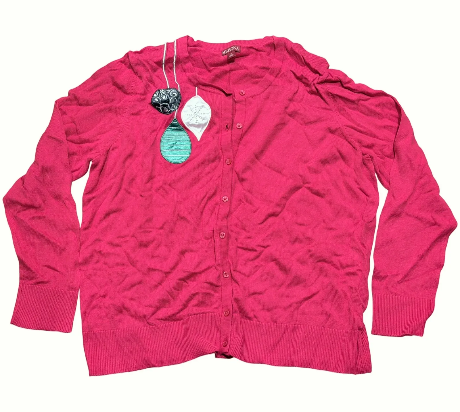 A vibrant red button-front cardigan sweater from Merona. This lightweight sweater features three dec... Show more
