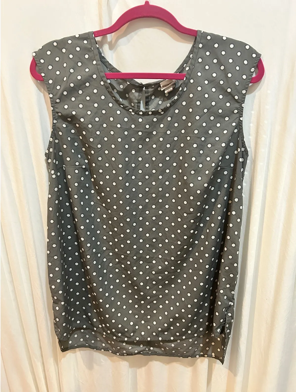 Chic sleeveless blouse in a timeless polka dot pattern. The top features a subtle keyhole back detai... Show more