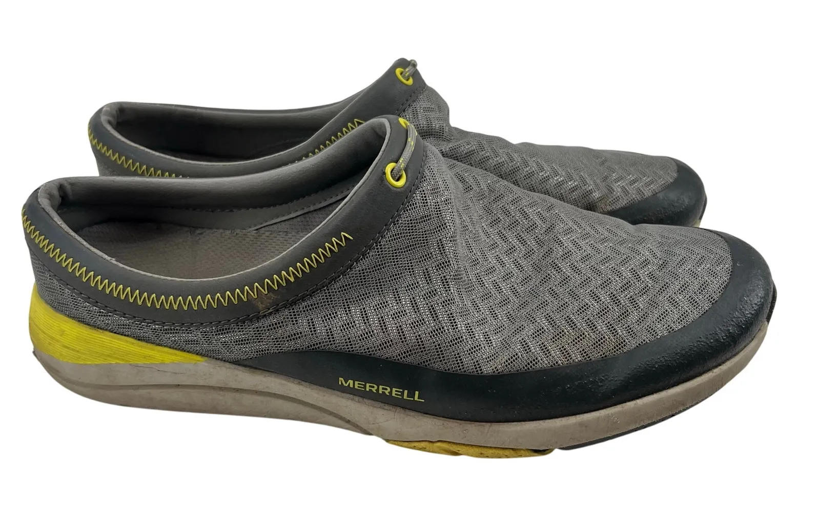 The Applaud Mesh features a lightweight and breathable upper that ensures optimal airflow, keeping your feet cool and comfortable during long hikes and warm weather. Designed for convenience, these hiking shoes provide a simple slip-on style, perfect for quickly transitioning from trail to town without compromising support and stability. Equipped with a durable, high-traction rubber sole, these shoes offer excellent grip on various terrains, ensuring stability and confidence whether you're on a rugged trail or a smooth pathway. Mesh and leather upper Breathable mesh lining Merrell M Select FIT.ECO blended EVA contoured footbed with M Select FRESH organic odor control Injection molded EVA midsole for stability and comfort These stylish shoes feature a round toe shape, slip-on closure, and a flat heel for all-day wear. The lightweight and breathable mesh upper, combined with a foam insole, ensures that your feet feel comfortable and dry, whether you're walking or hiking. The rubber outsole provides traction, making them suitable for various activities in all seasons. Perfect for activewear or casual outings, these mules are a versatile and practical choice for women on the g Size 11 Style j03338 Color vapor blue UT