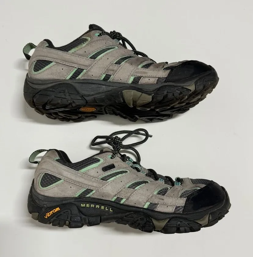 Merrell - Women's Moab 2 Waterproof Lace Up Hiking Shoe in Gray & Mint Green Size 9 - $95 - From Simone