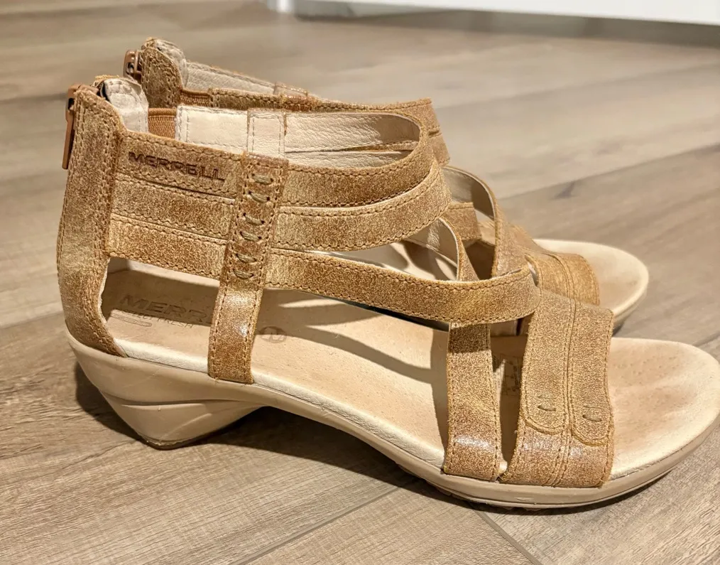 Merrell Zip Up Strappy Sandals Heels oat straw tan brown size 7‎ - $20 - From Megan