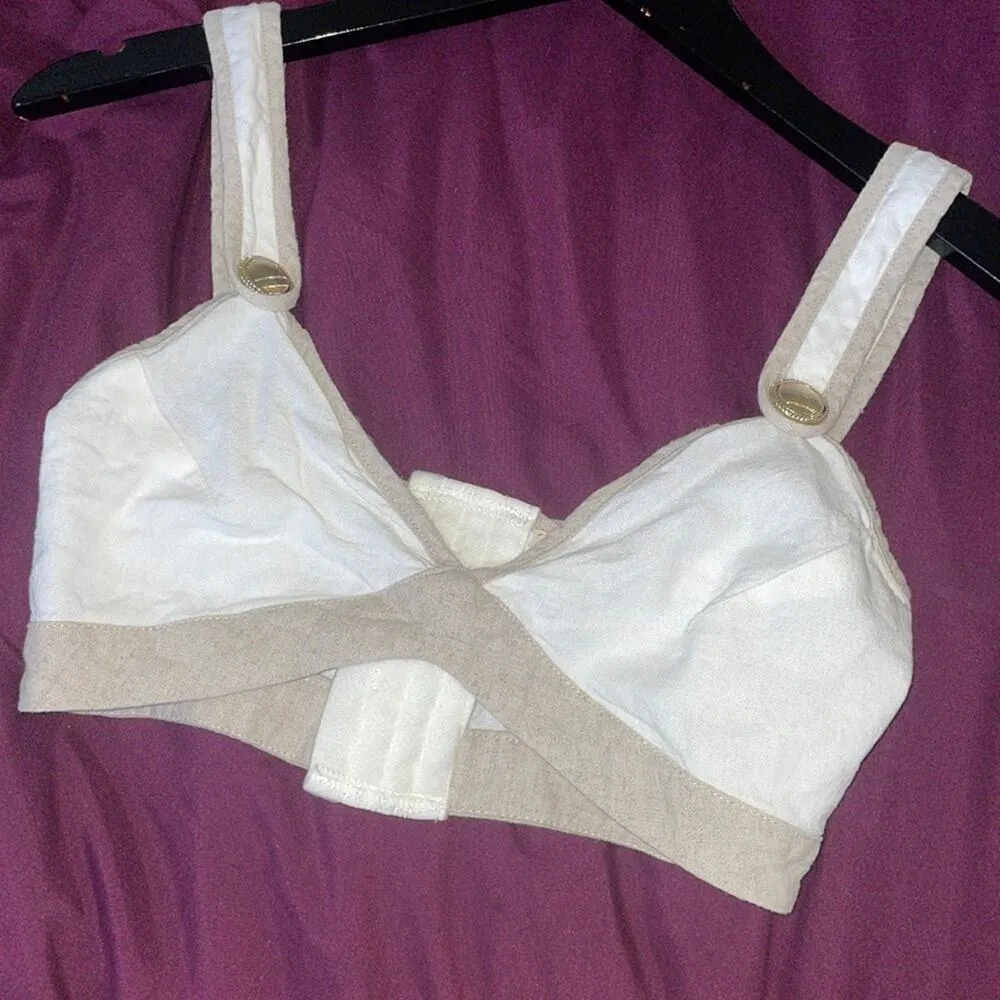 Meshki linen cropped tank Adjustable hook and eye back Decorative hardware buttons Gently pre-owned Size XXS tags: tank top, cami, bandeau, neutral, sustainable, minimalist, spring, summer, beach, vacation, coastal, travel, cruise Very sexy!
