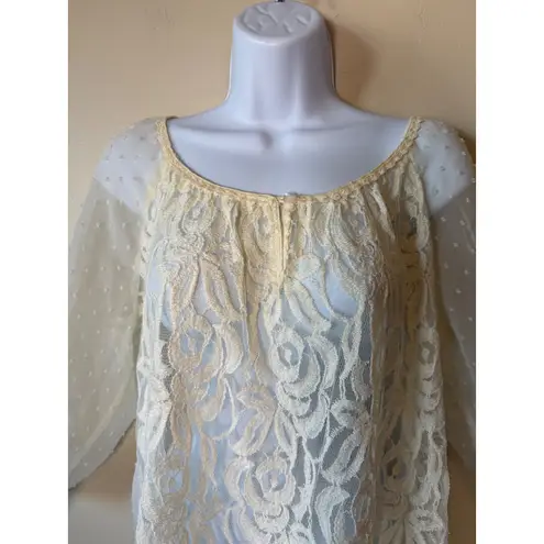 Ethereal beauty radiates from this Metaphor lace tunic, a piece designed to capture hearts and elevate your style. Delicate Swiss dots dance across sheer, flowing sleeves, hinting at sophisticated allure while a stunning overlay of intricate floral lace adorns the front, creating a captivating textural dimension. This breathtaking top feels like a whisper against your skin, promising effortless grace for any occasion. Perfect for a romantic dinner date, a stylish brunch with friends, or a sophisticated evening out, this tunic is your go-to for timeless elegance. Type: Blouse Department: Women Style: Tunic Material: 100% Polyester, Polyester Blend, Cotton Blend, Nylon Neckline: Round Neck Sleeve Length: Long Sleeve Sleeve Type: Classic/Fitted Sleeve Pattern: Floral Accents: Crochet Theme: Bohemian, Designer, Romantic Style Features: Sheer, Unlined Keywords: Metaphor blouse, lace tunic, sheer sleeve top, Swiss dot blouse, boho top, romantic blouse, evening top, special occasion top, elegant blouse, plus size fashion, women's clothing, designer blouse, fashionable top, spring fashion, summer fashion, cottage core