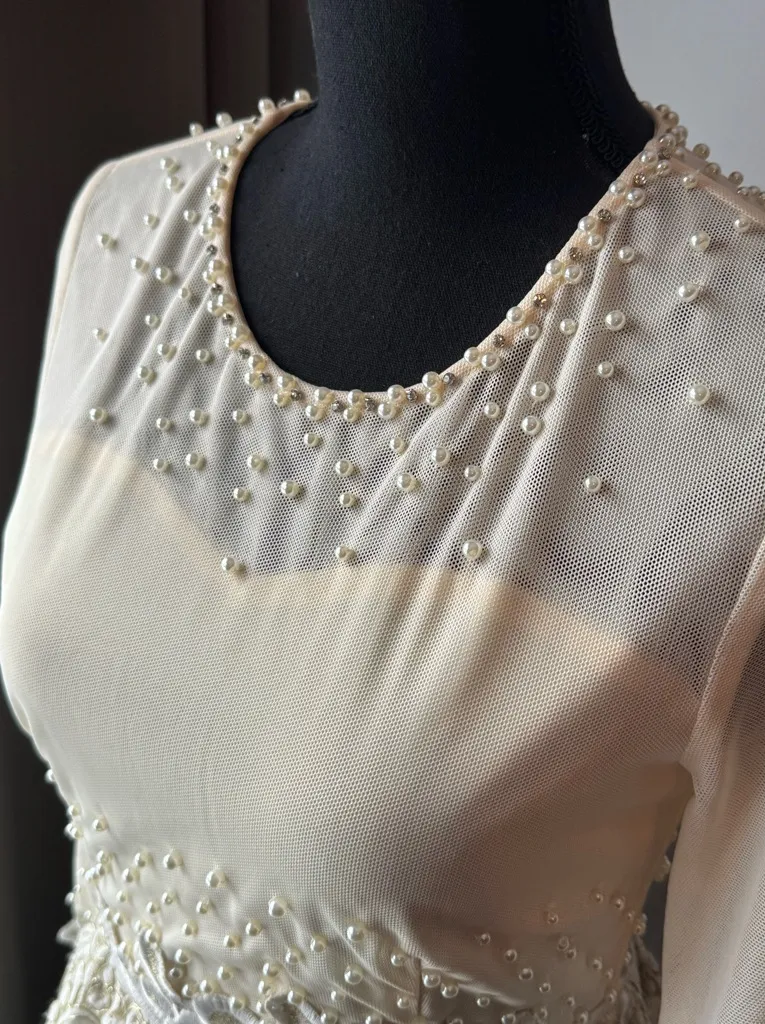Nwt! This dress is stunning! So much detail and class! Lying flat measurements are approx: pit to pit 17” waist is 13.5”shoulder to bottom of dress is 40”. Questions? Leave a comment below!