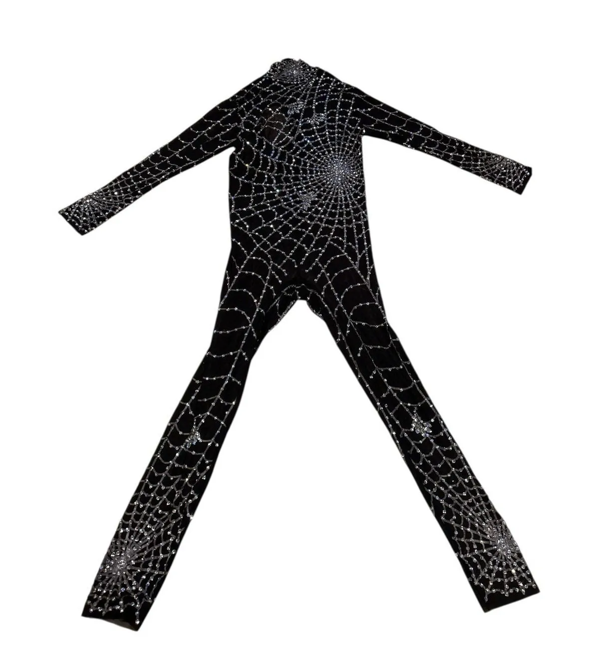 The Mew Mews Octavia Long Sleeve Embellished Cobweb Jumpsuit in size S is a stylish one-piece outfit designed for women. Made from 100% polyester, this black jumpsuit features long sleeves and a zip closure for easy wear and removal. The garment is adorned with rhinestone accents, adding a touch of glamour to the overall design. With a 28-inch inseam, this jumpsuit offers a comfortable and flattering fit for a trendy and fashionable look. Ideal for special occasions or everyday wear, this jumpsuit is sure to make a statement with its unique embellishments and flattering silhouette. This jumpsuit is gorgeous and new with tags. Please look at all photos before purchasing. Thanks so much for looking. L(12)
