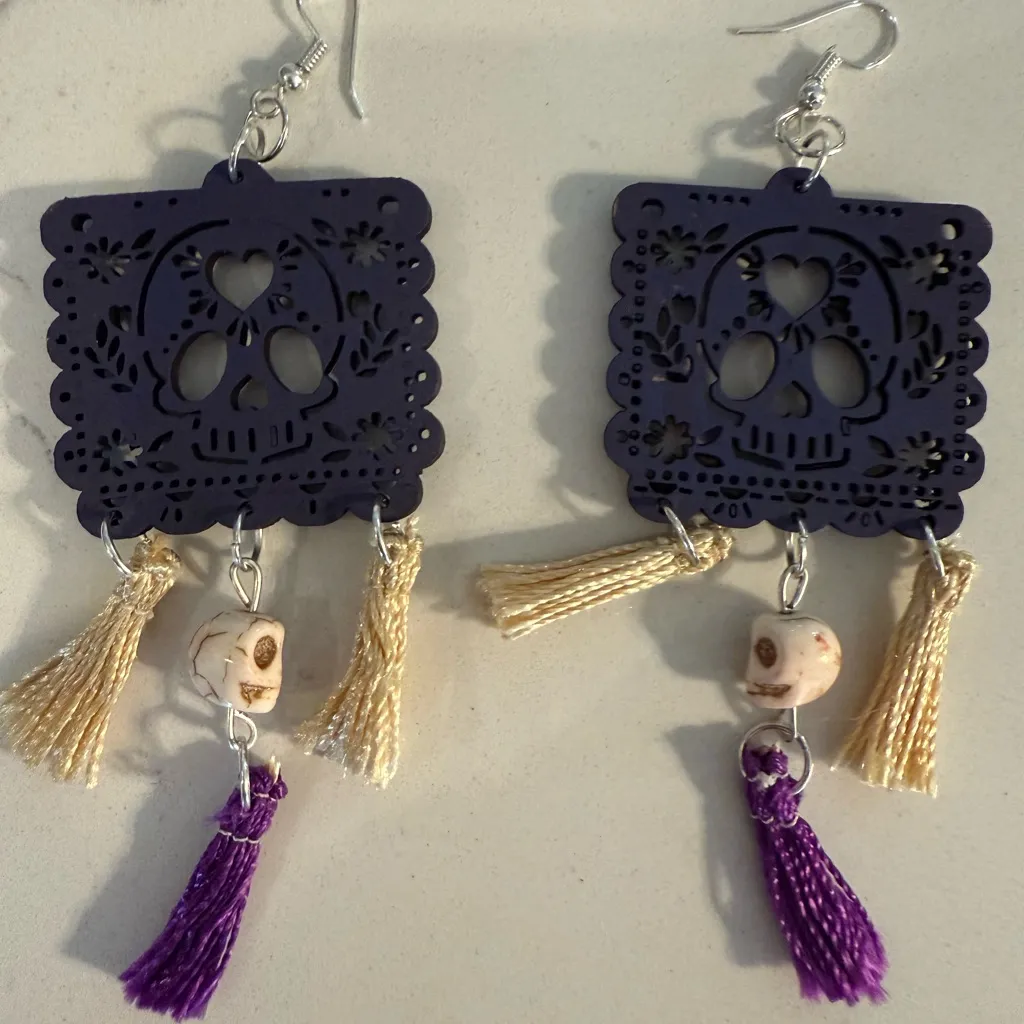 MEXICANA Purple and Cream Skull Earrings nwot - $35 - From Mara