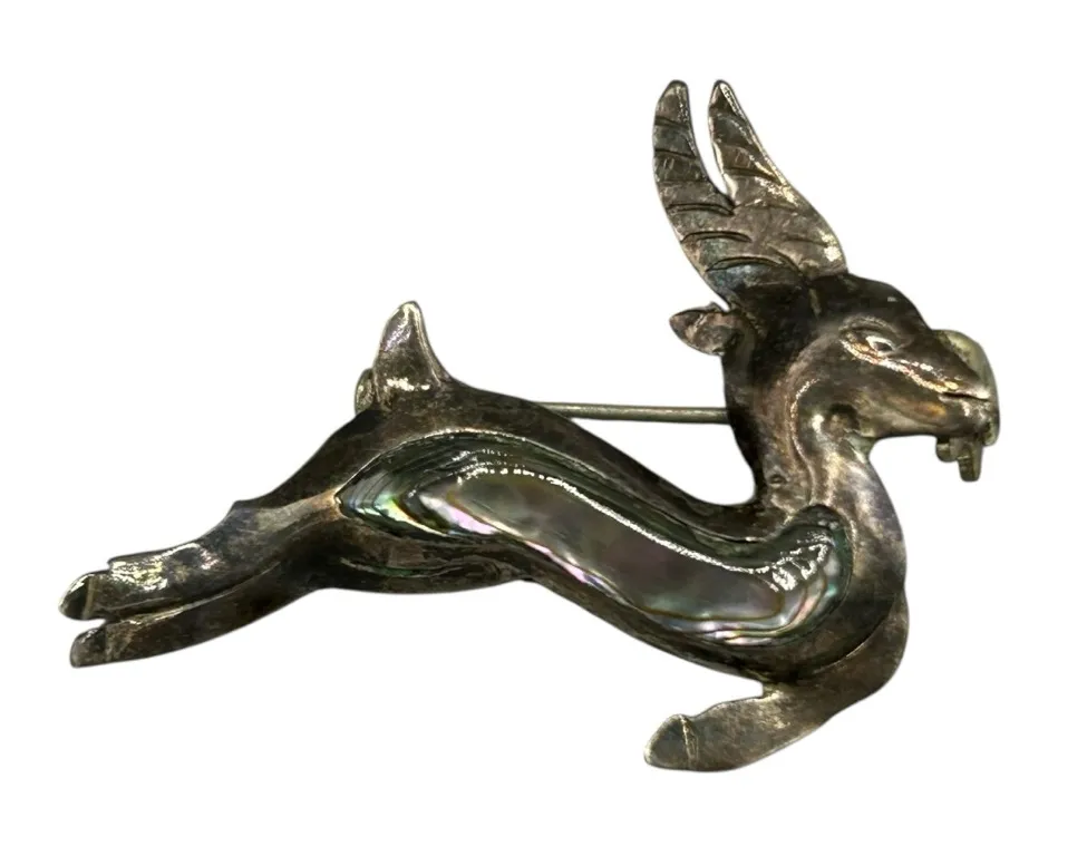 Vintage sterling silver gazelle or antelope brooch with abalone shell inlay. Marked Mexico 925, R-21... Show more