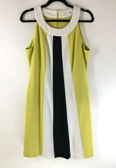 Calvin Klein Womens A-Line Dress Yellow Black Color Block Stretch Zip 10 Dress has pilling from wea... Show more