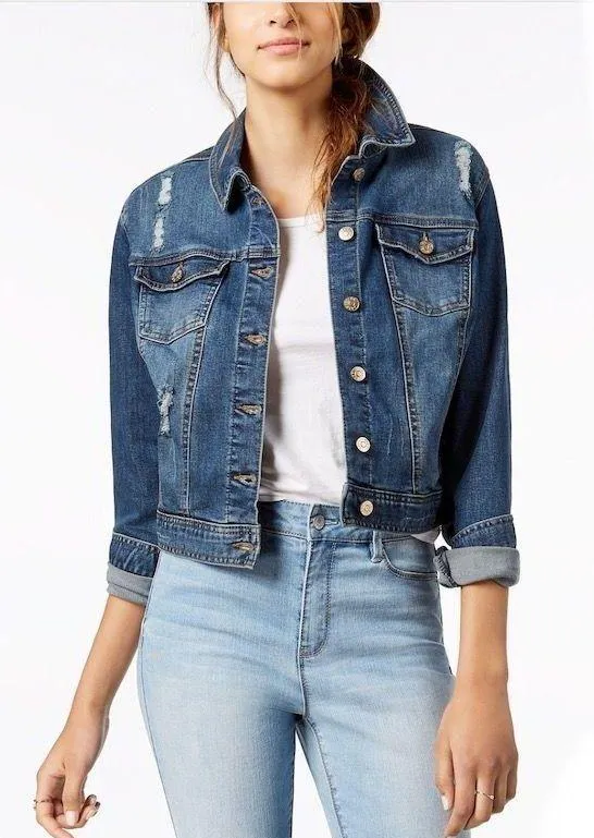 Pink's take updates the look with a faded dark wash and front rips for a lived-in look. • Front butt... Show more