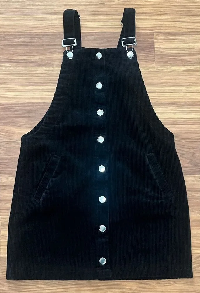 Black corduroy overall dress from the brand mi ami. It is a mini-length dress with adjustable buckle straps, a square neckline, and button closures down the front. EUC Size:Xs The dress is versatile and can be worn for a variety of occasions, from casual days out to summer events. It can be paired with a variety of tops, such as t-shirts, sweaters, or blouses. 🛍️🛍️Questions? Ask before purchasing.