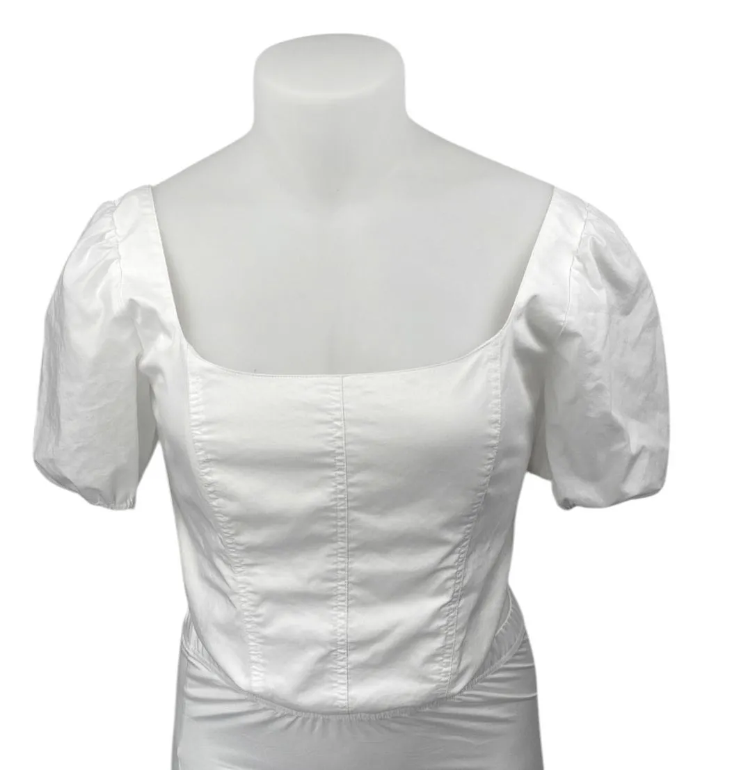Abercrombie & Fitch White Short Puff Sleeve Smocked Corset Blouse Crop Top Size L Size: L Condition... Show more