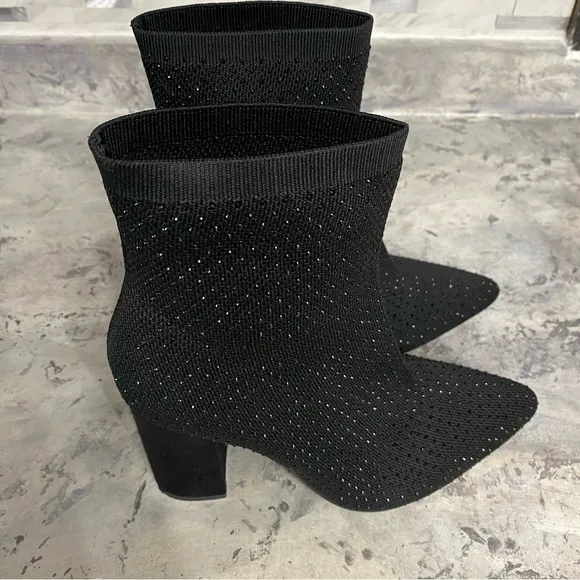 Chic black boots with a touch of sparkle. Perfect for elevating any outfit. Comfortable block heel d... Show more