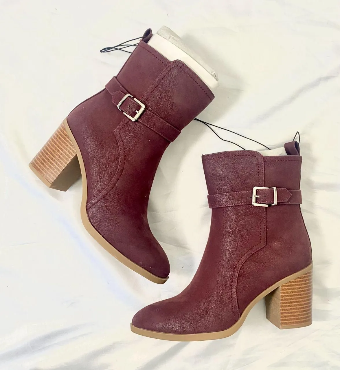 Retro Boho Buckle High Heel Boots ☽༓・*˚⁺‧͙ ༓ Brand: MIA NWOT ༓ Size: US 9 ༓ classic burgundy red... Show more