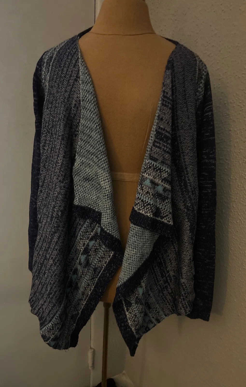 Style:Waterfall long sleeve aztec print sweater Color: Blue/ Turquoise/White Size: S Armpit: 20” Len... Show more