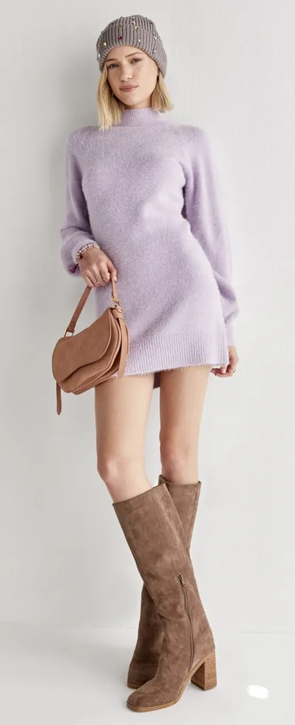 Miami Francesca’s Rosemary Mock Neck Fuzzy Sweater Mini Dress Soft Lilac purple medium. Fuzzy textur... Show more